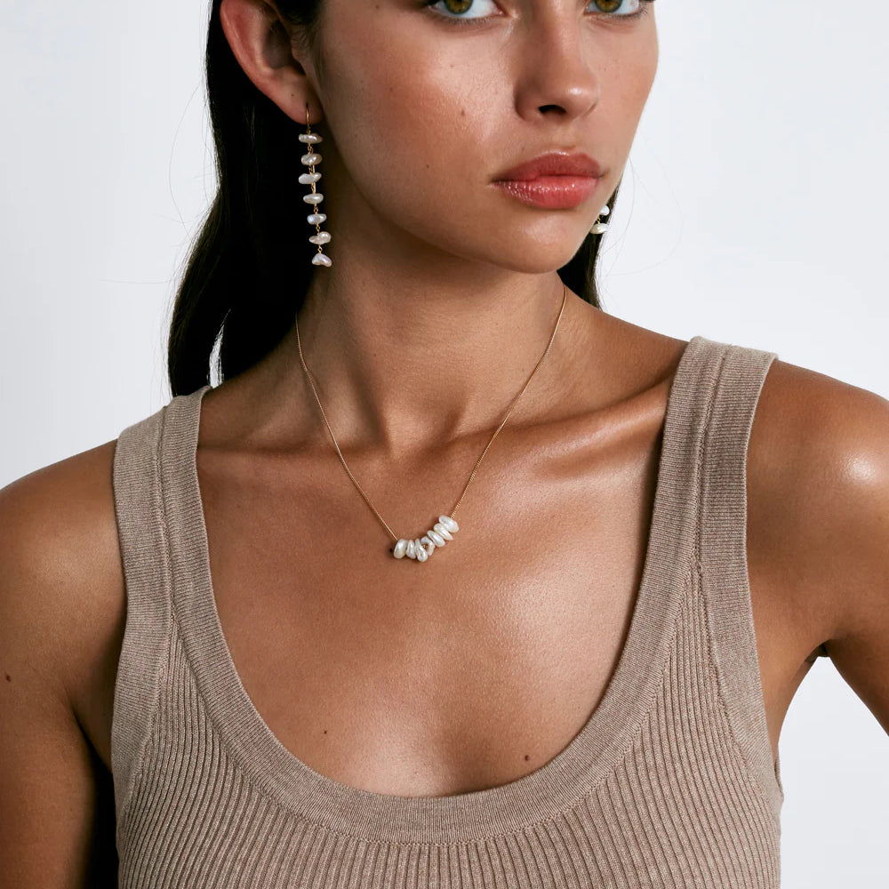 Aqua Chalcedony Two Tone Pearl Wrap Earrings