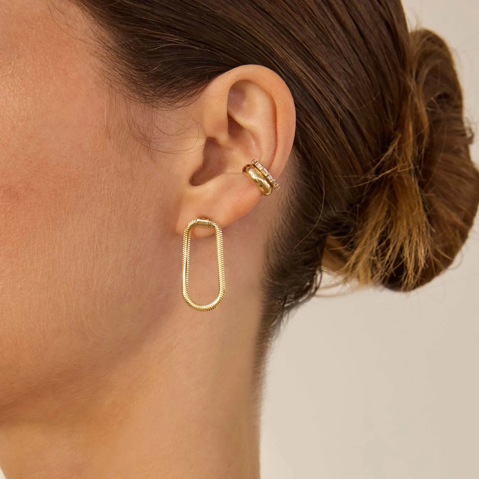 Baguette Diamond and Bead Huggie Hoop Earrings
