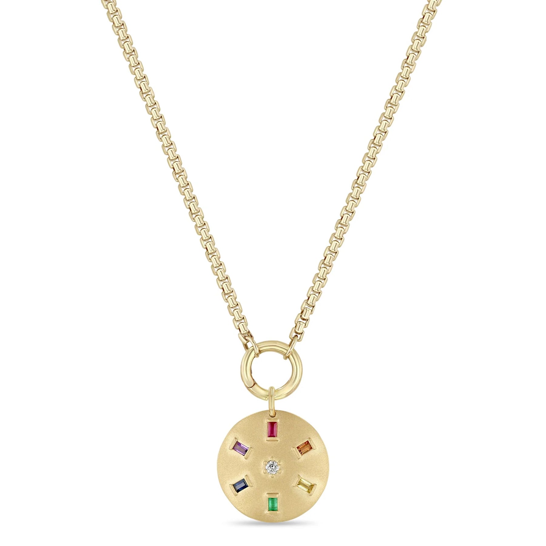 14k Rainbow Baguette and Diamond Brushed Gold Domed Box Chain Necklace {Trunk Show}