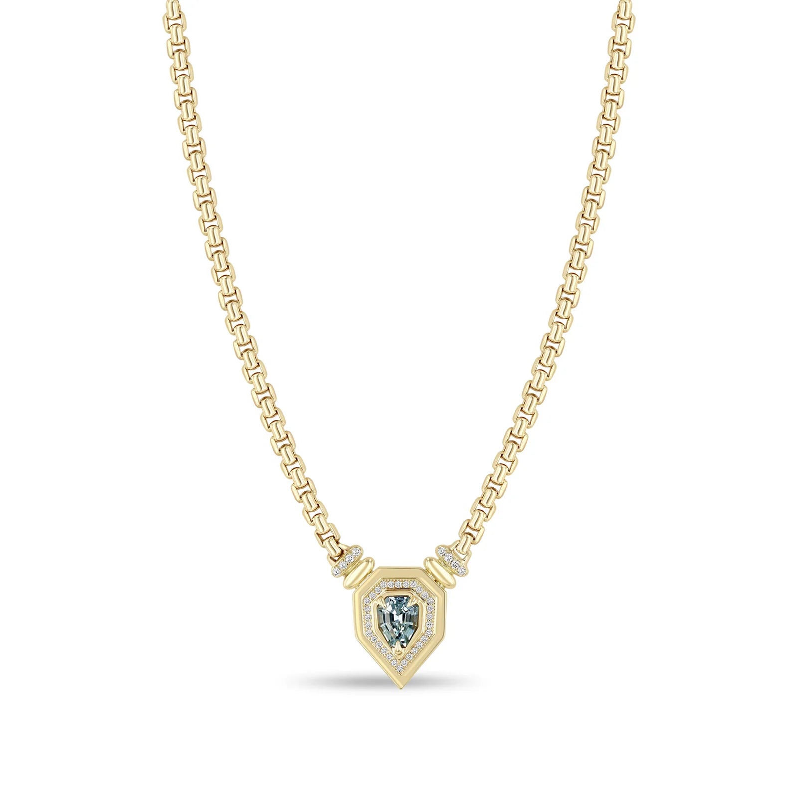 14k Brushed Pave Diamond Supernova Box Chain Necklace {Trunk Show}