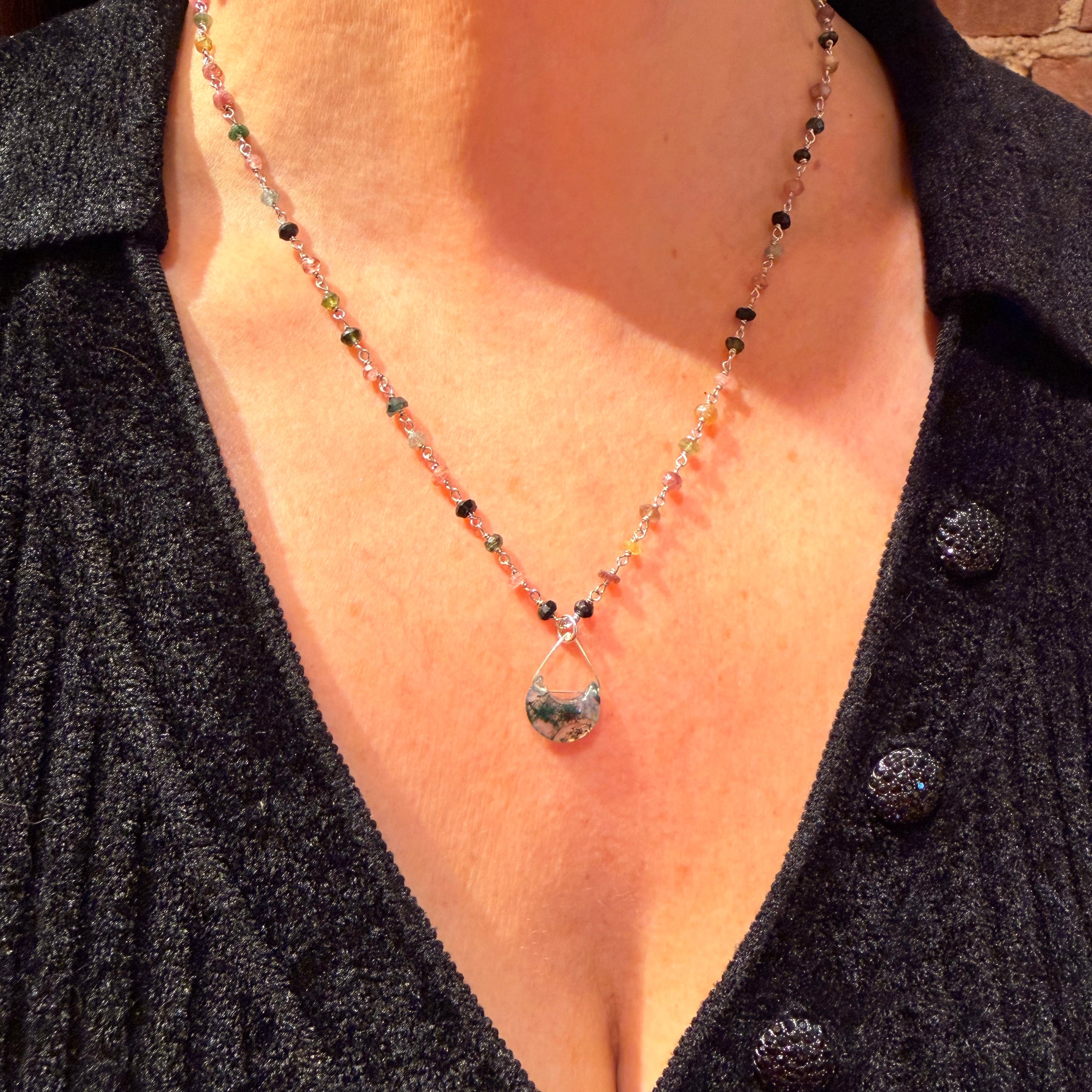 Gemstone Bead Chain Necklace with Moon Pendant