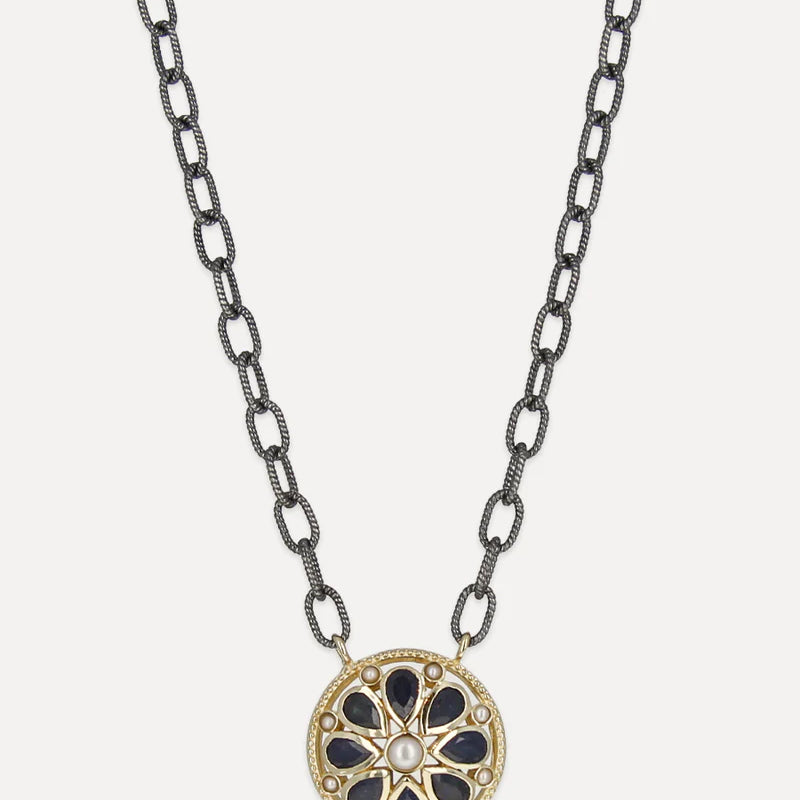 Blue Sapphire and Diamond Secret Garden Drop Necklace