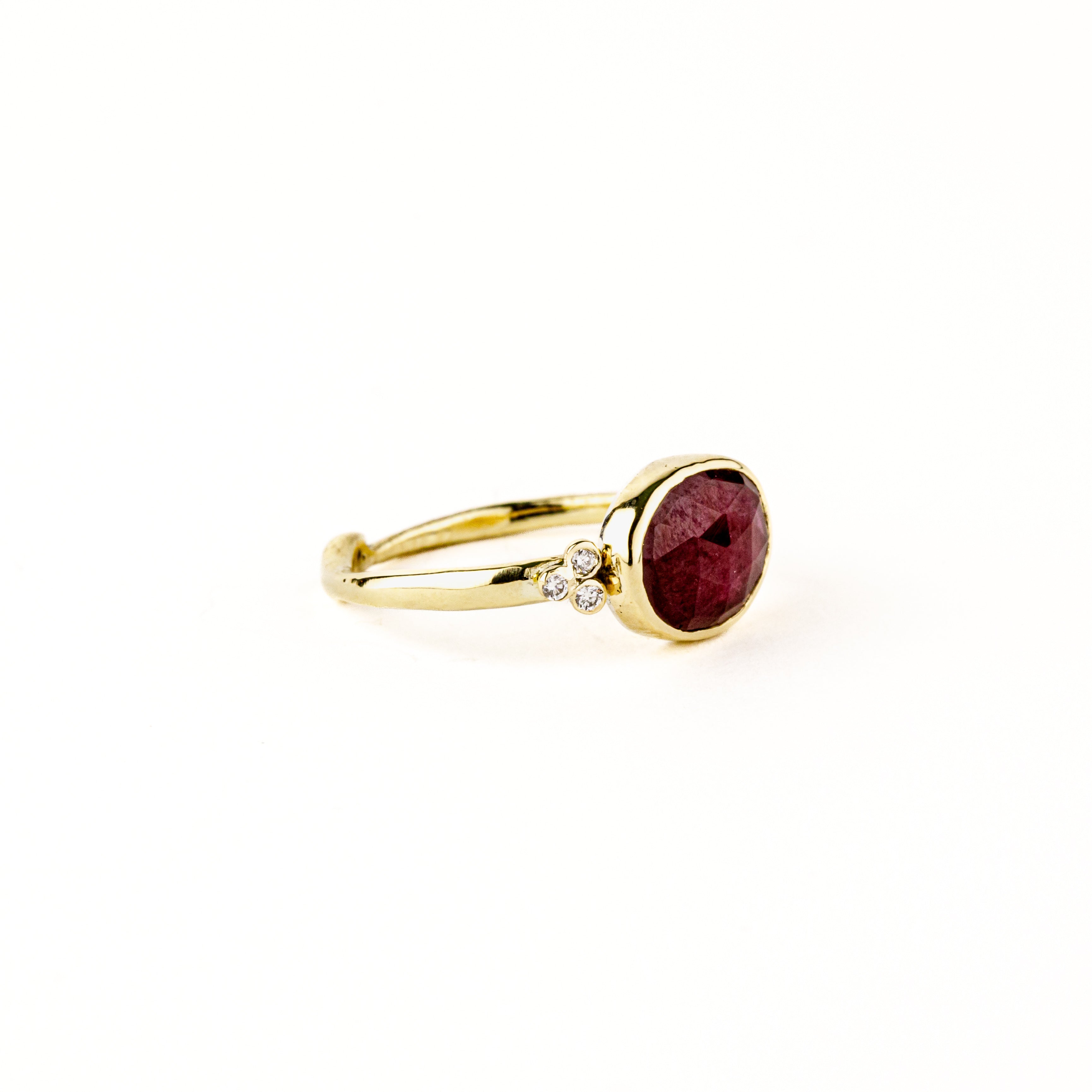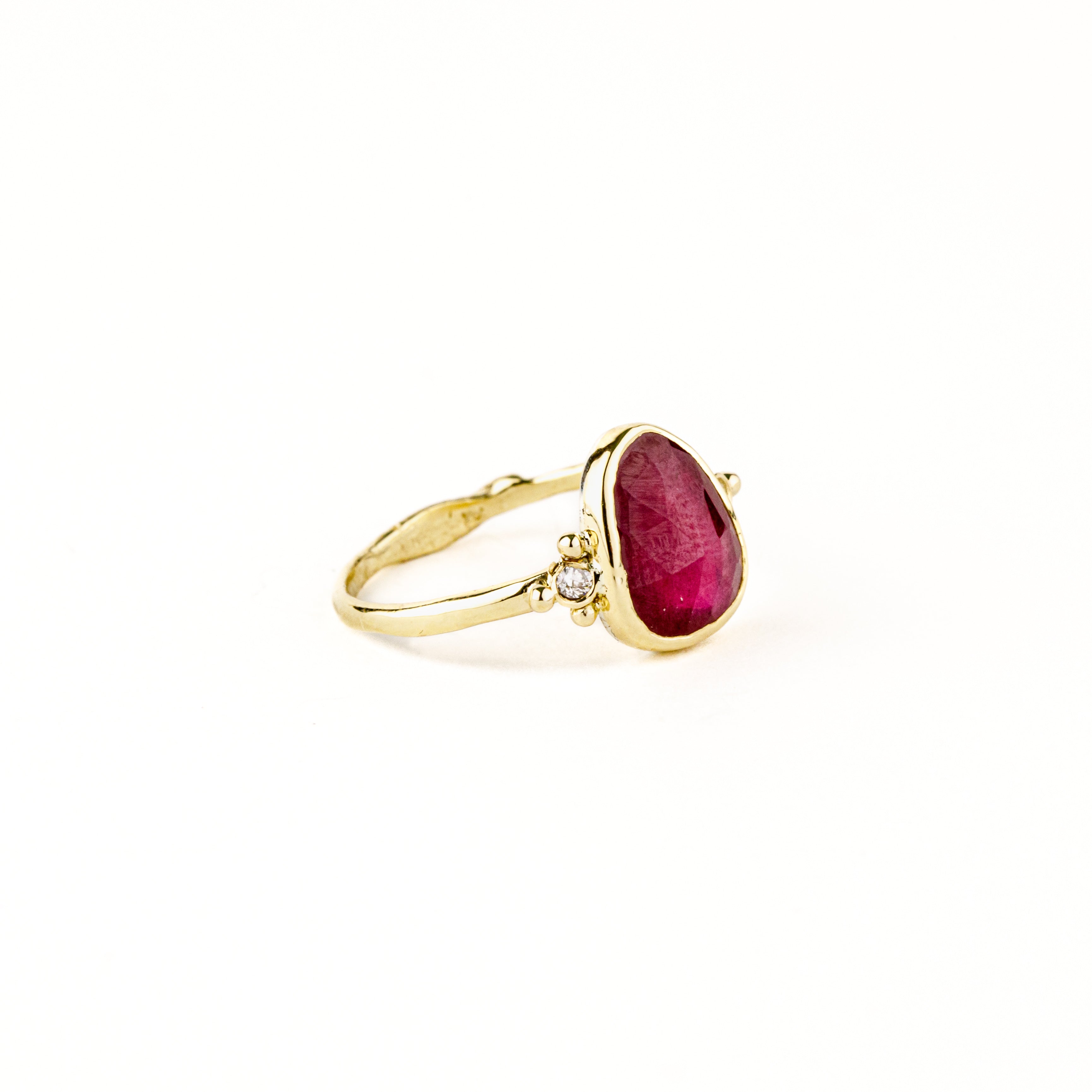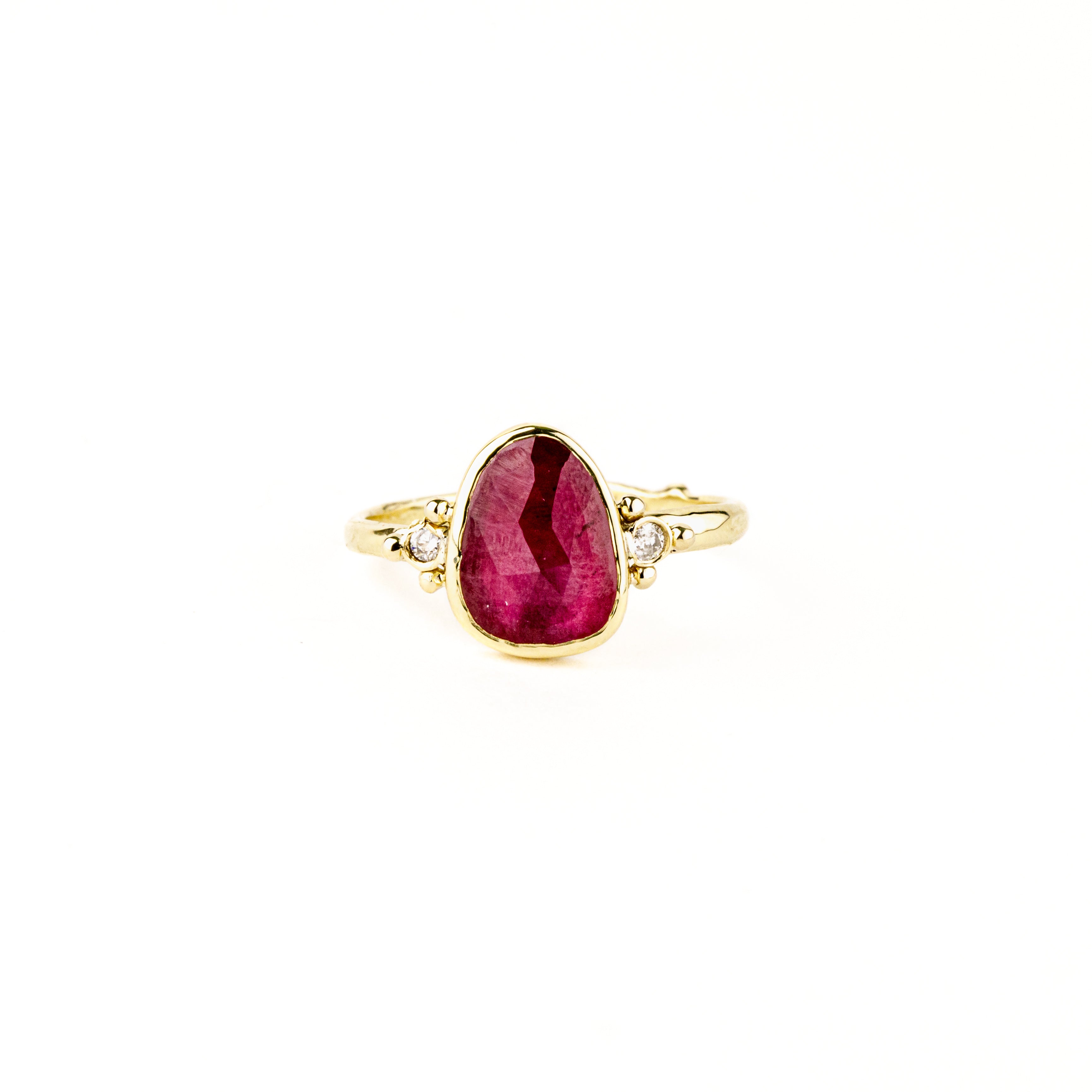 Freeform Pink Ruby Ring with Diamond Clusters
