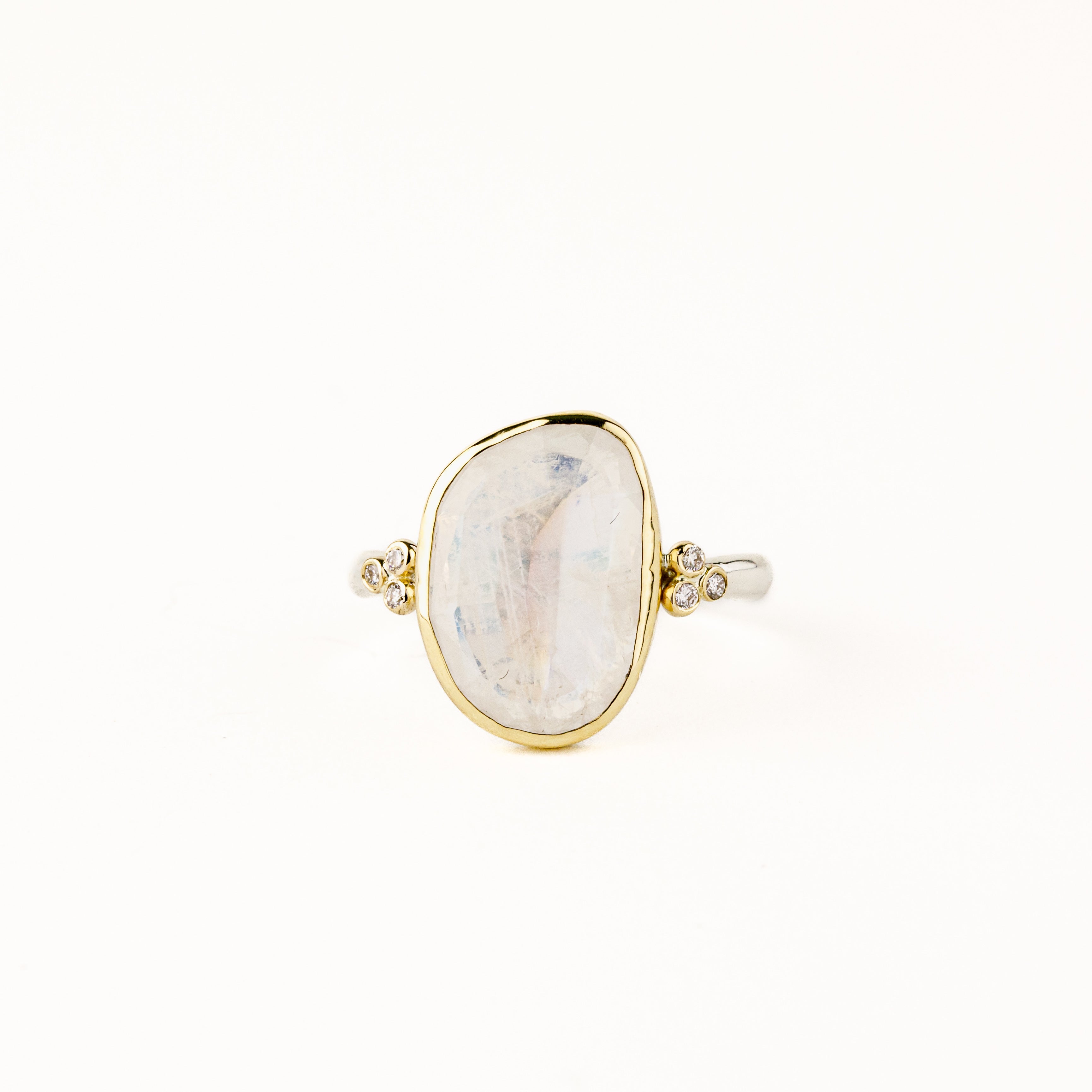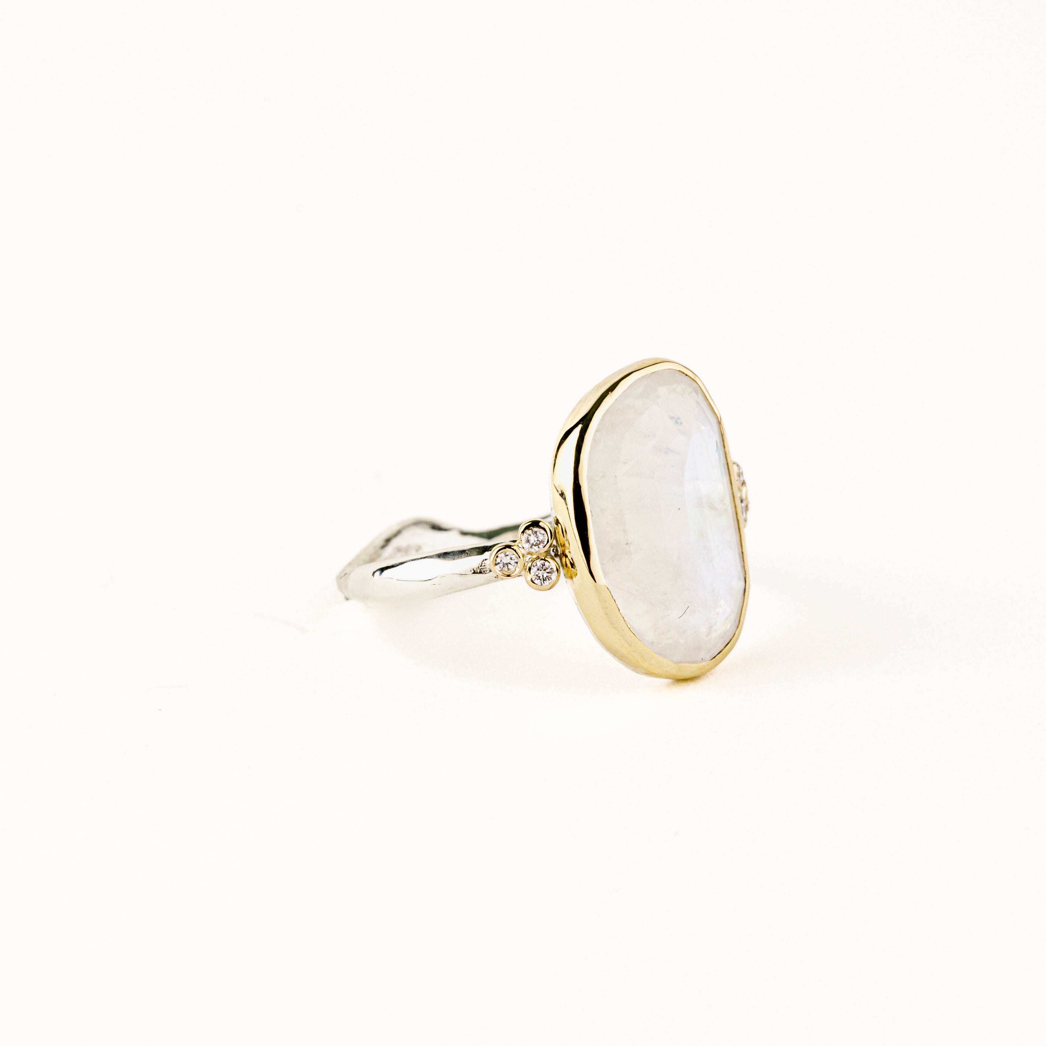 Asymmetric Oval Moonstone Ring with Diamond Accents