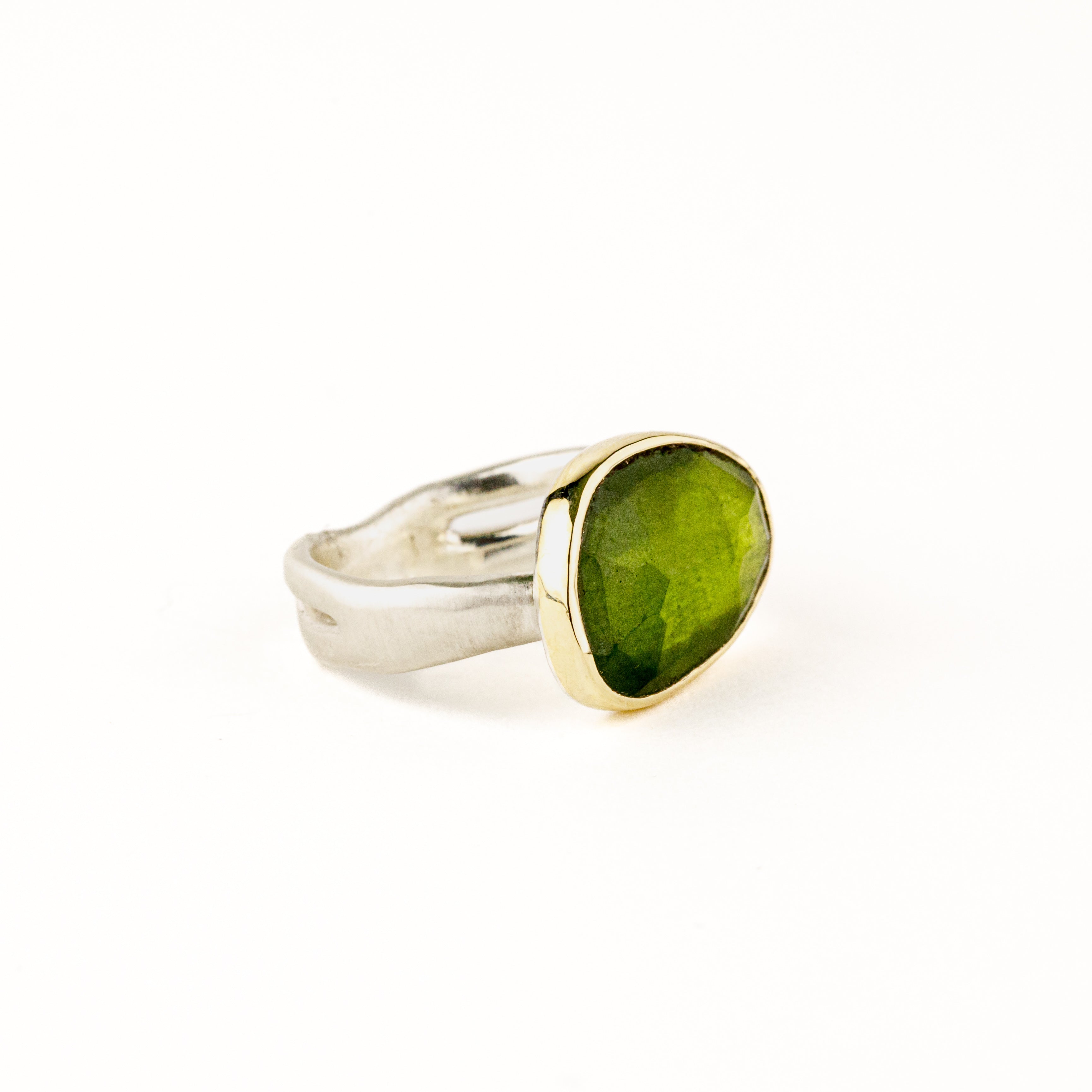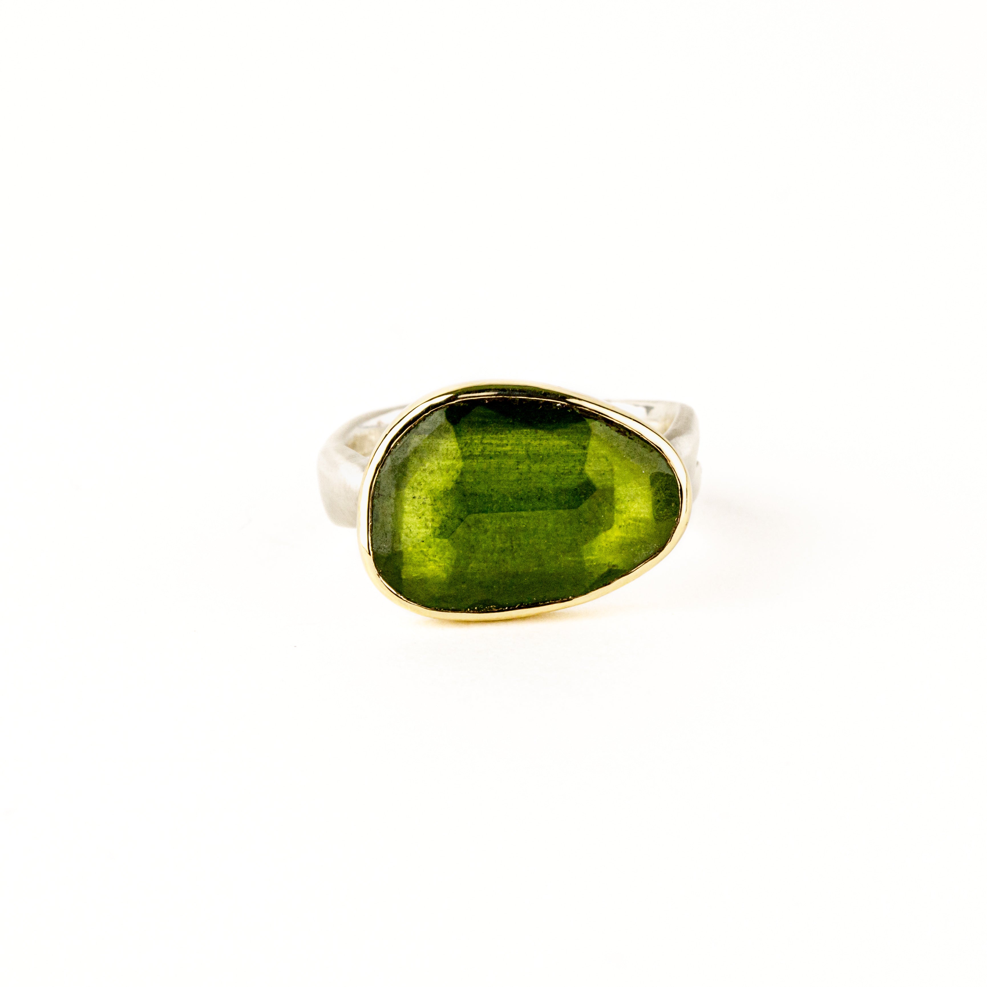 Kiwi Quartz Ring with Tsavorite Garnets