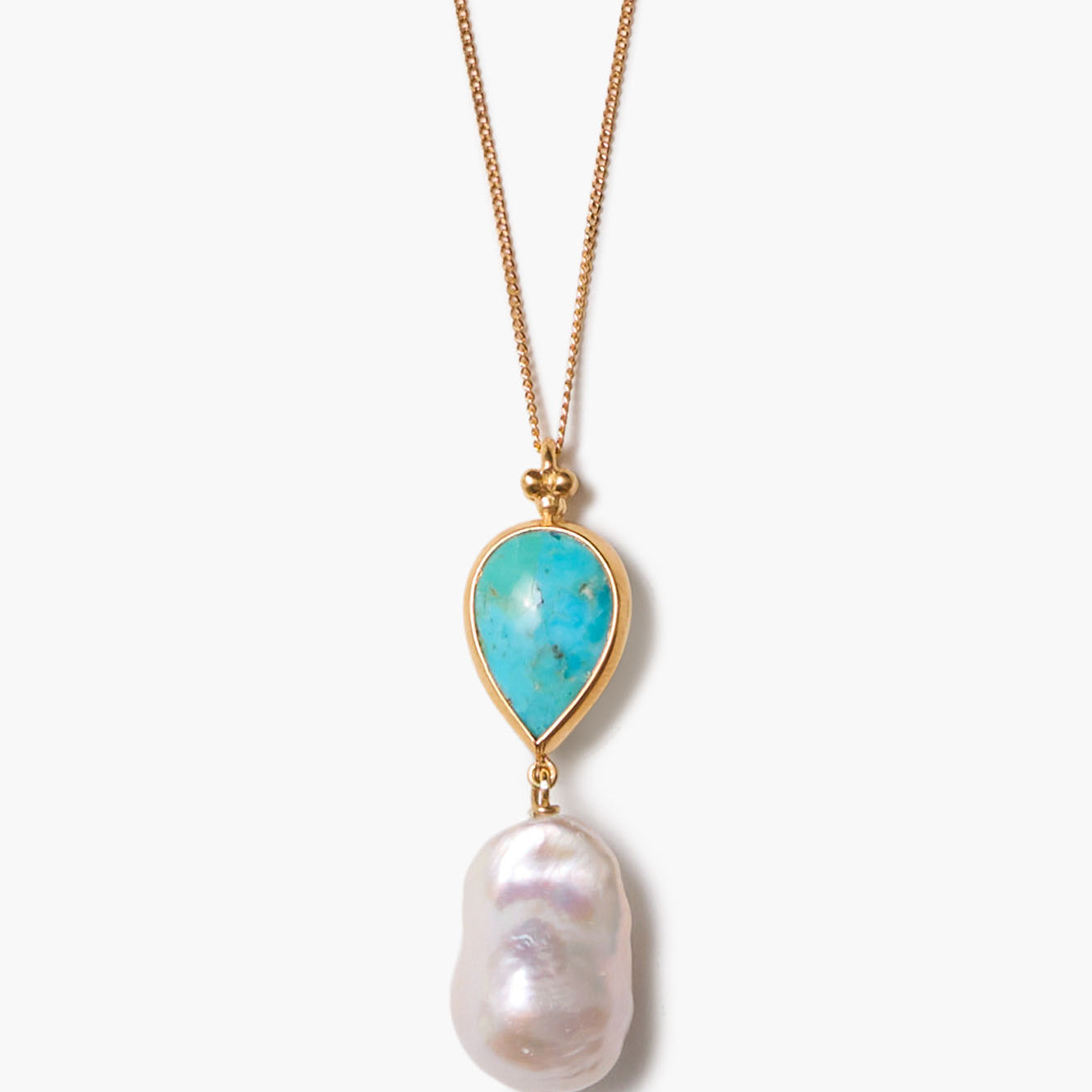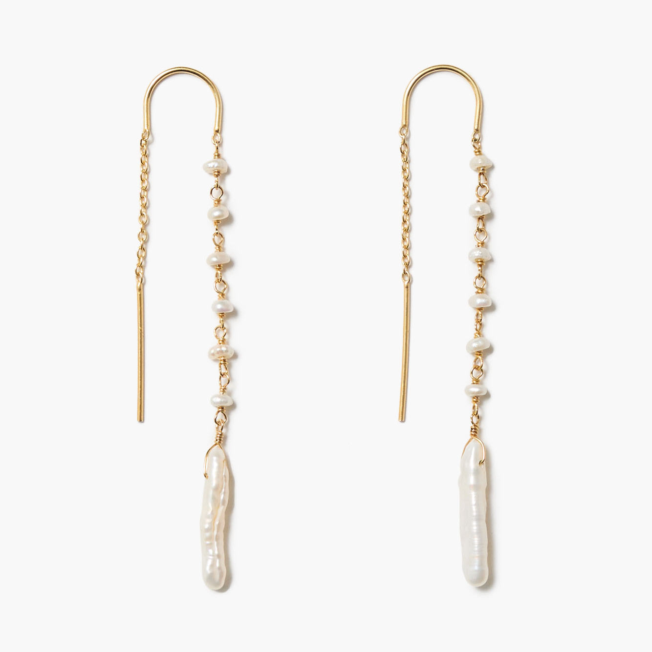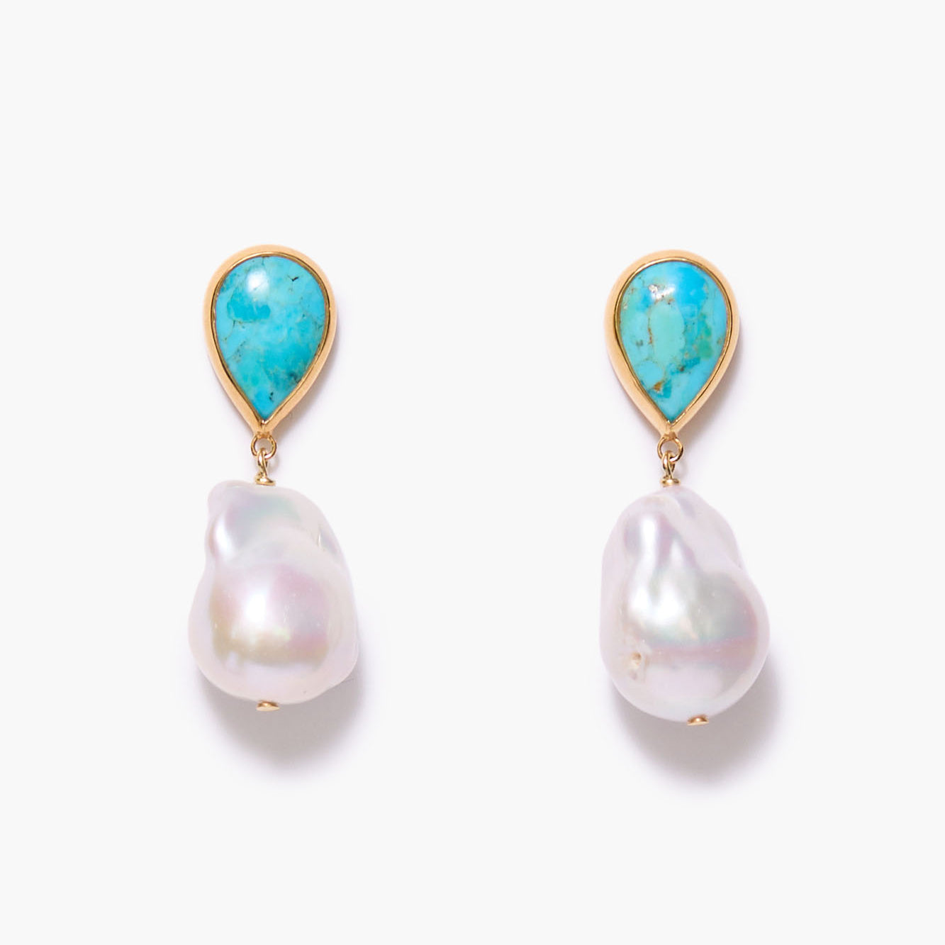 Aqua Chalcedony Two Tone Pearl Wrap Earrings