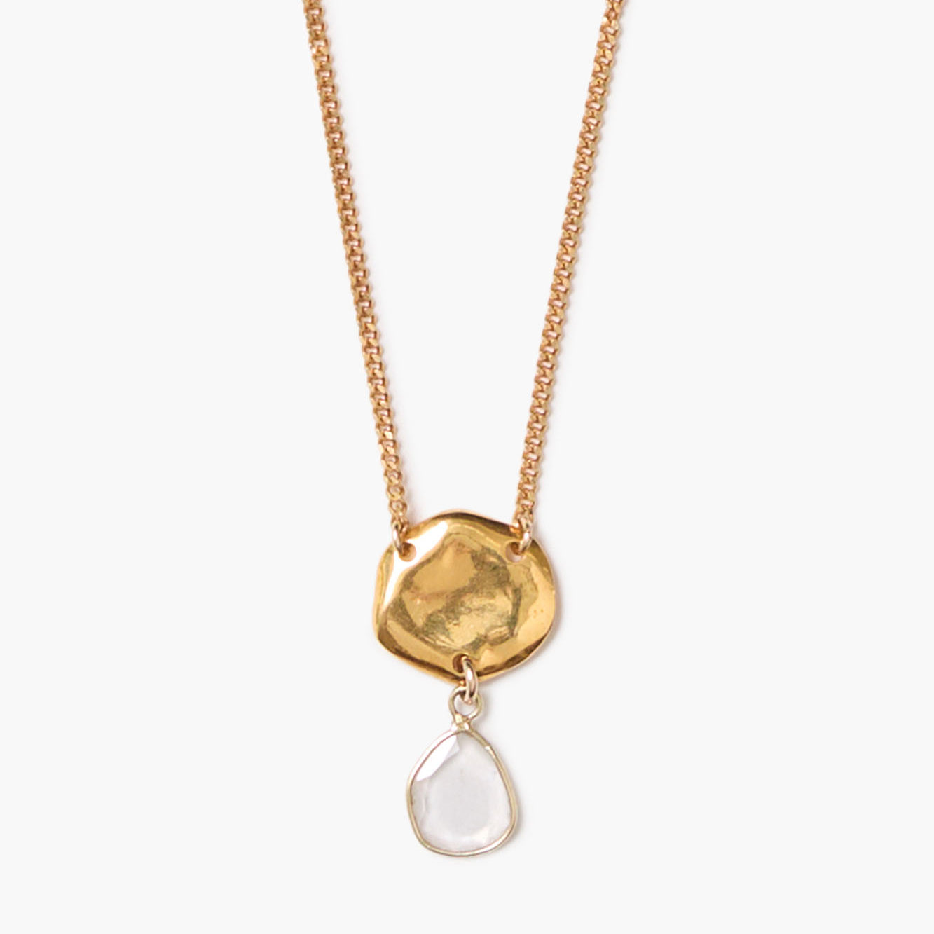Gold Coin with Moissanite Slice Necklace