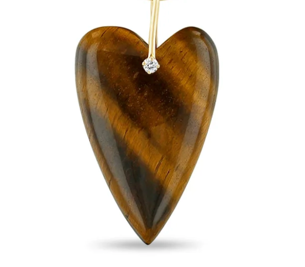 14k Carved Heart Tiger's Eye Pendant