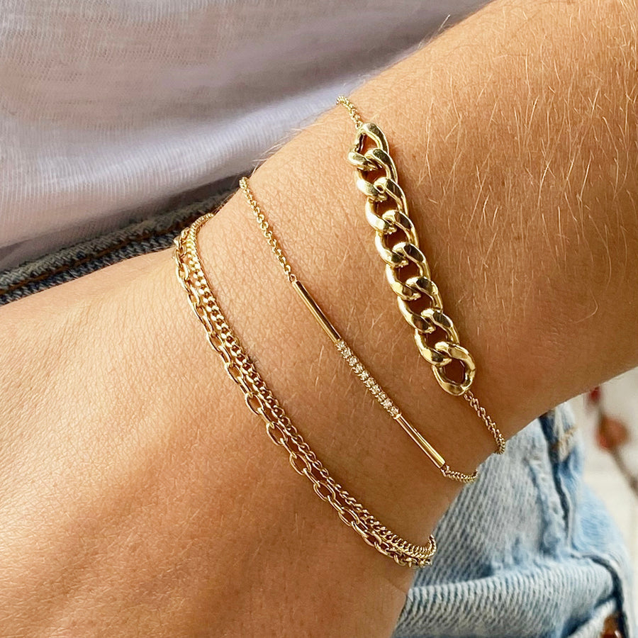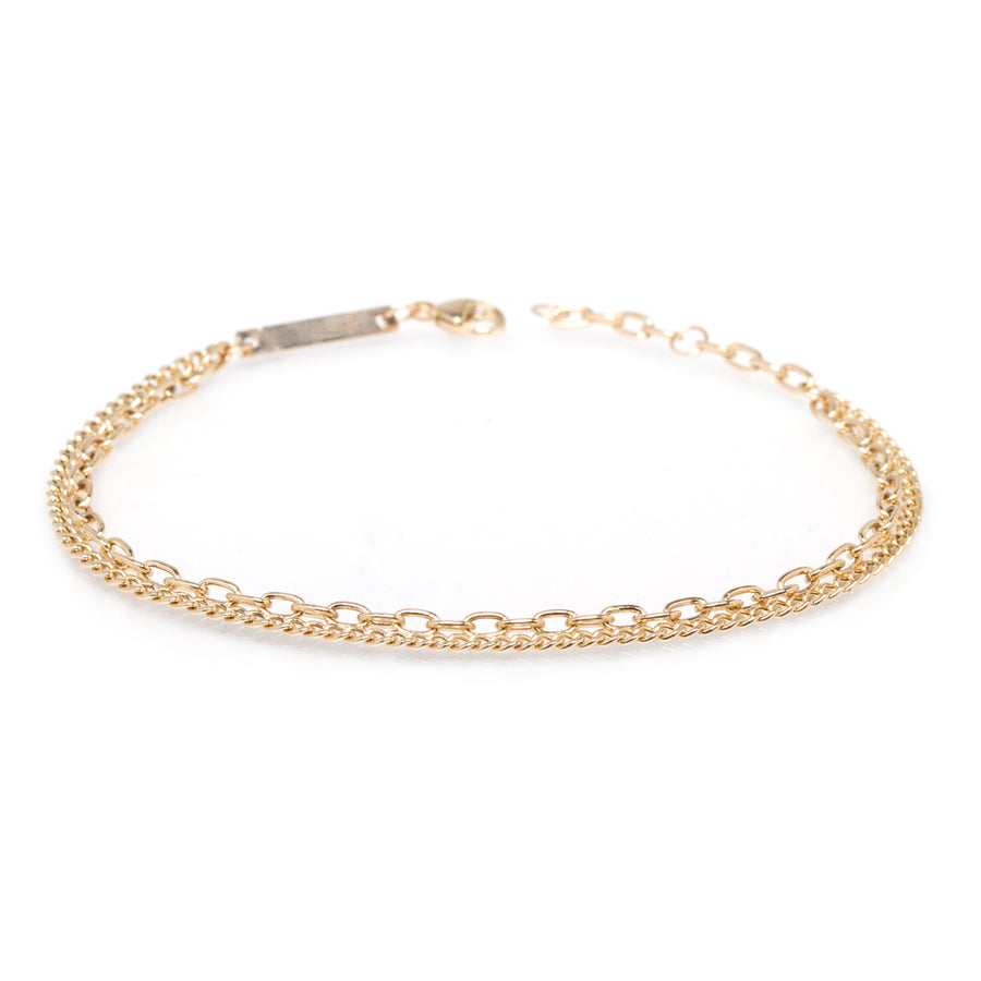 Extra Small Curb and Small Square Oval Link Double Chain Bracelet