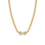 • 14k medium curb chain fixed at 16" • chain is approx. 4.5mm wide • link is approx. 7.7mm wide x 15mm tall • white diamonds .25 ctw • available in yellow gold only