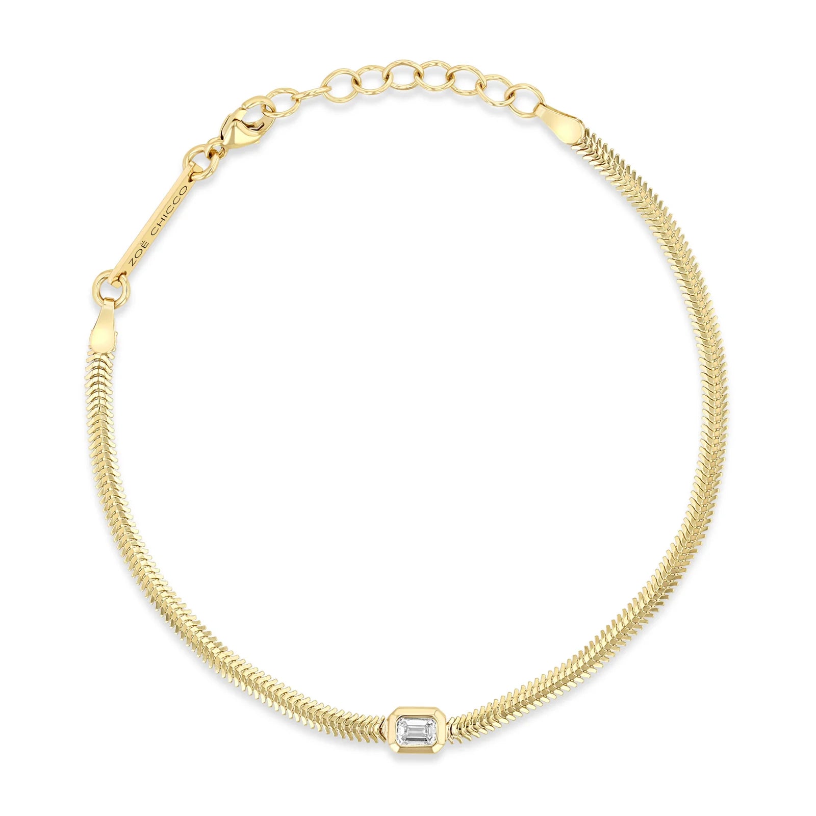 14k Emerald Cut Diamond Snake Chain Bracelet