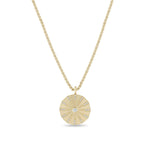 • 14k small box chain is adjustable from 18-20"• small box chain is approx. 1.25mm wide• disc is approx. 20mm in diameter• white diamonds .28 ctw• available in yellow gold only