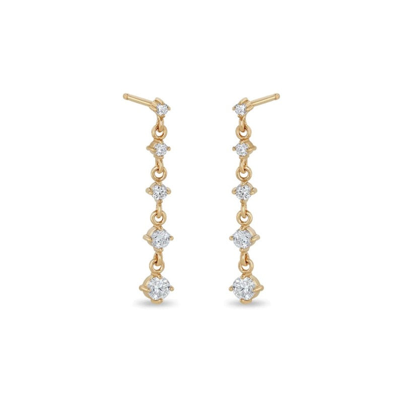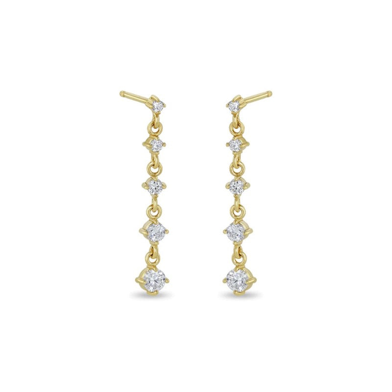 5 Linked Graduated Prong Diamond Drop Earrings