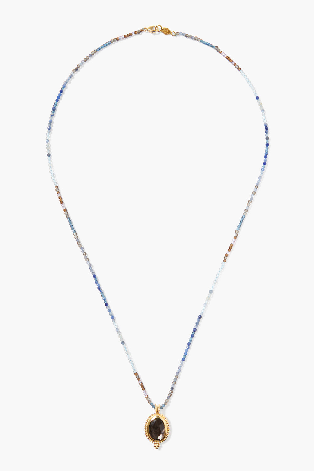 - Blue Mix - 18k gold plated sterling silver, iolite, lapis, sodalite, blue topaz, labradorite, hypersthene, crystals.