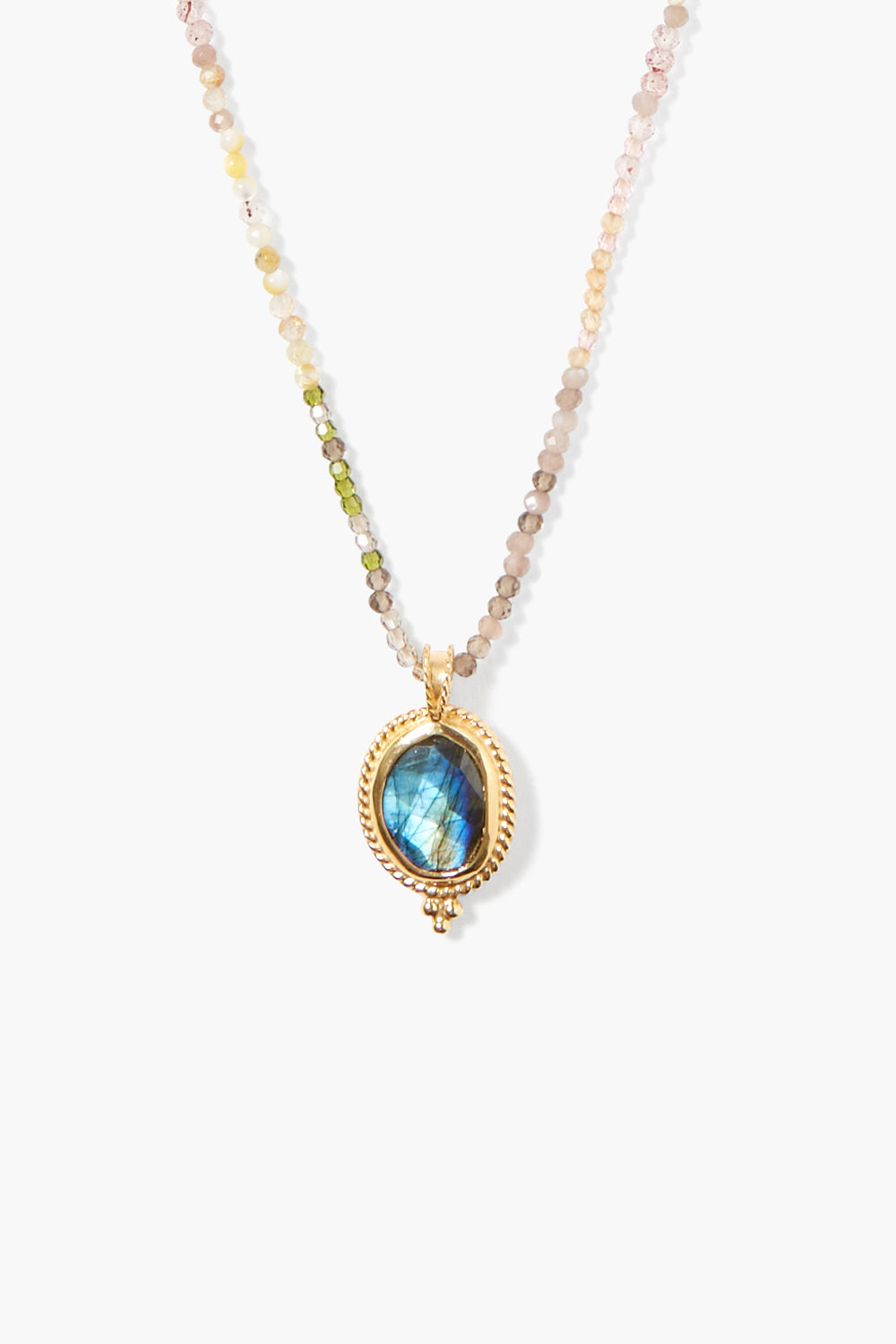 - Natural Mix - 18k gold plated sterling silver, strawberry quartz, citrine, yellow mother of pearl, pink moonstone, smoky quartz, labradorite, crystals..
