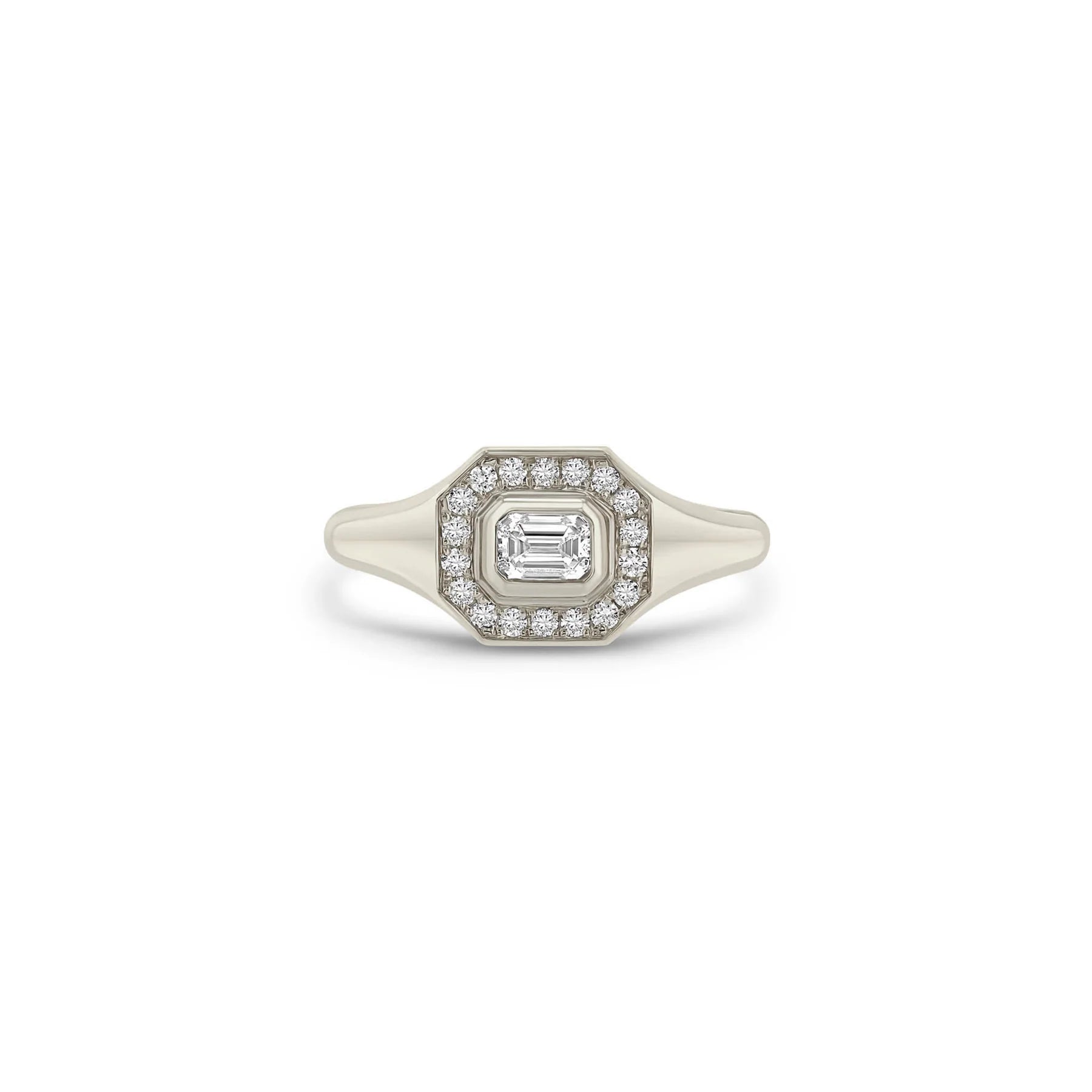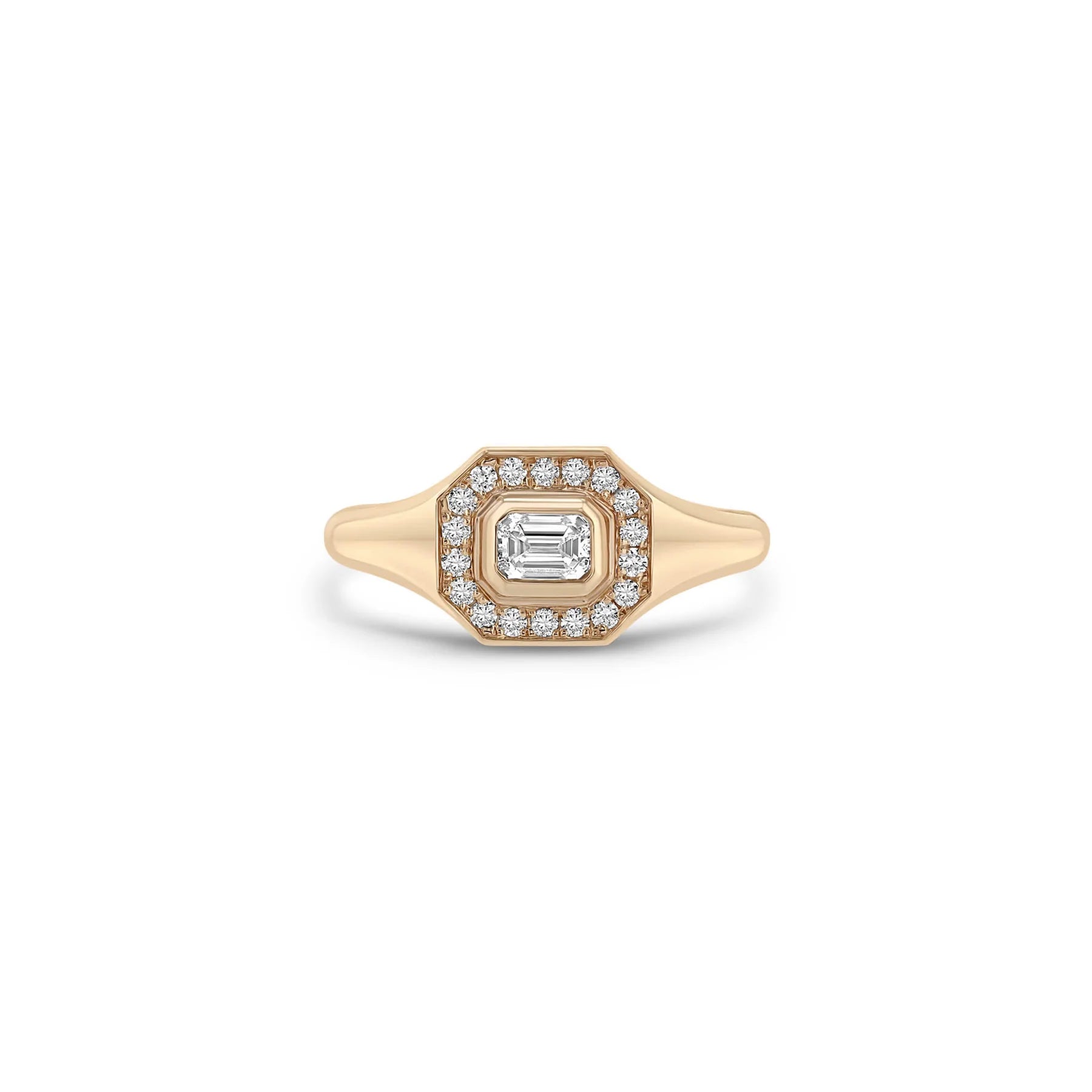 14k Emerald Cut Diamond Halo Signet Ring