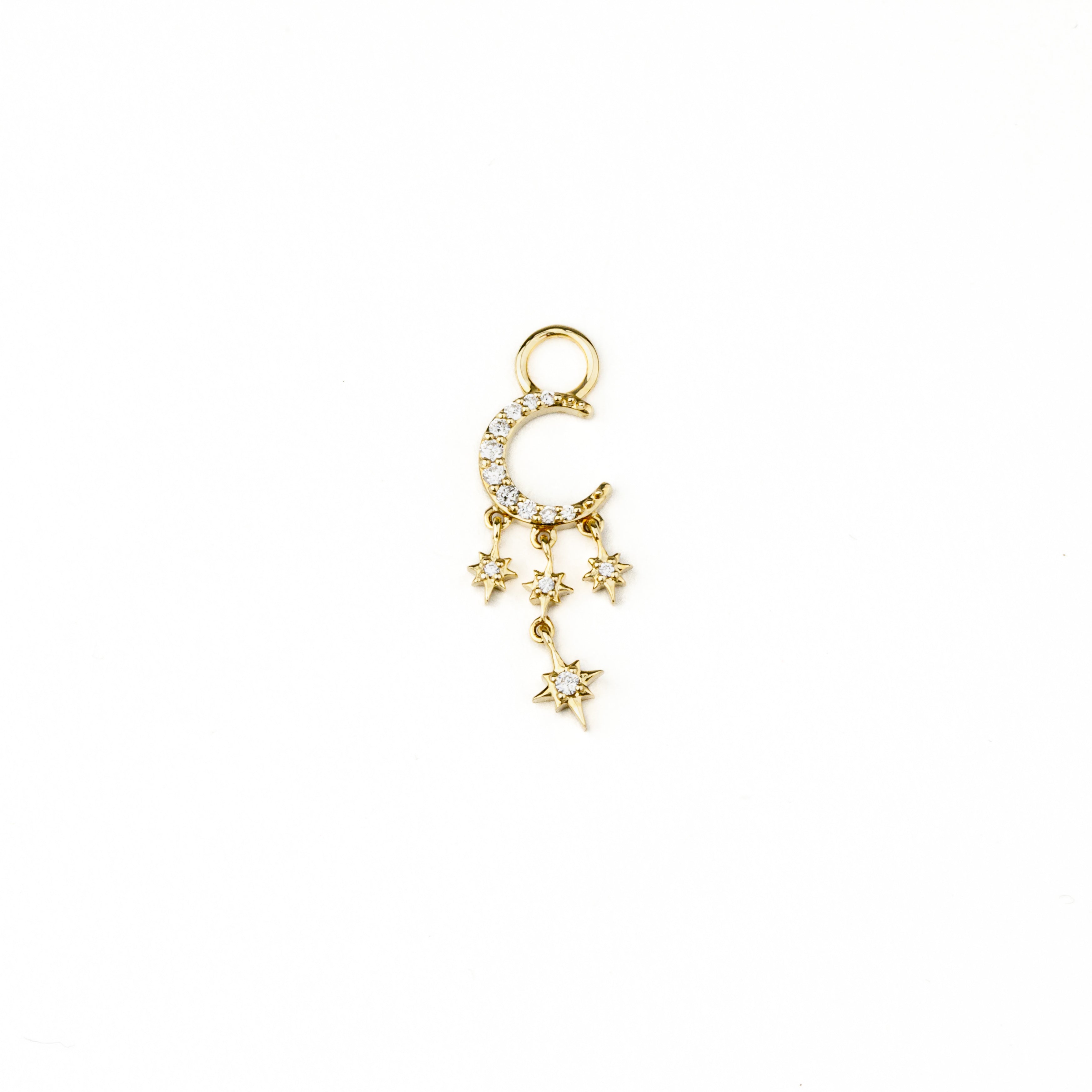 Create your own story with Three Stories Jewelry's Make a Wish Small Crescent Moon and Star Charm. Add it to your collection of huggies and chains for a versatile and customizable look. With the ability to purchase as single charms or pairs, the possibilities for creating your own unique set are endless. Elevate your style with this luxury charm.
