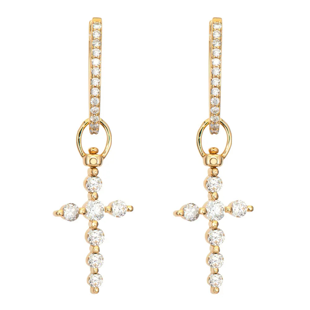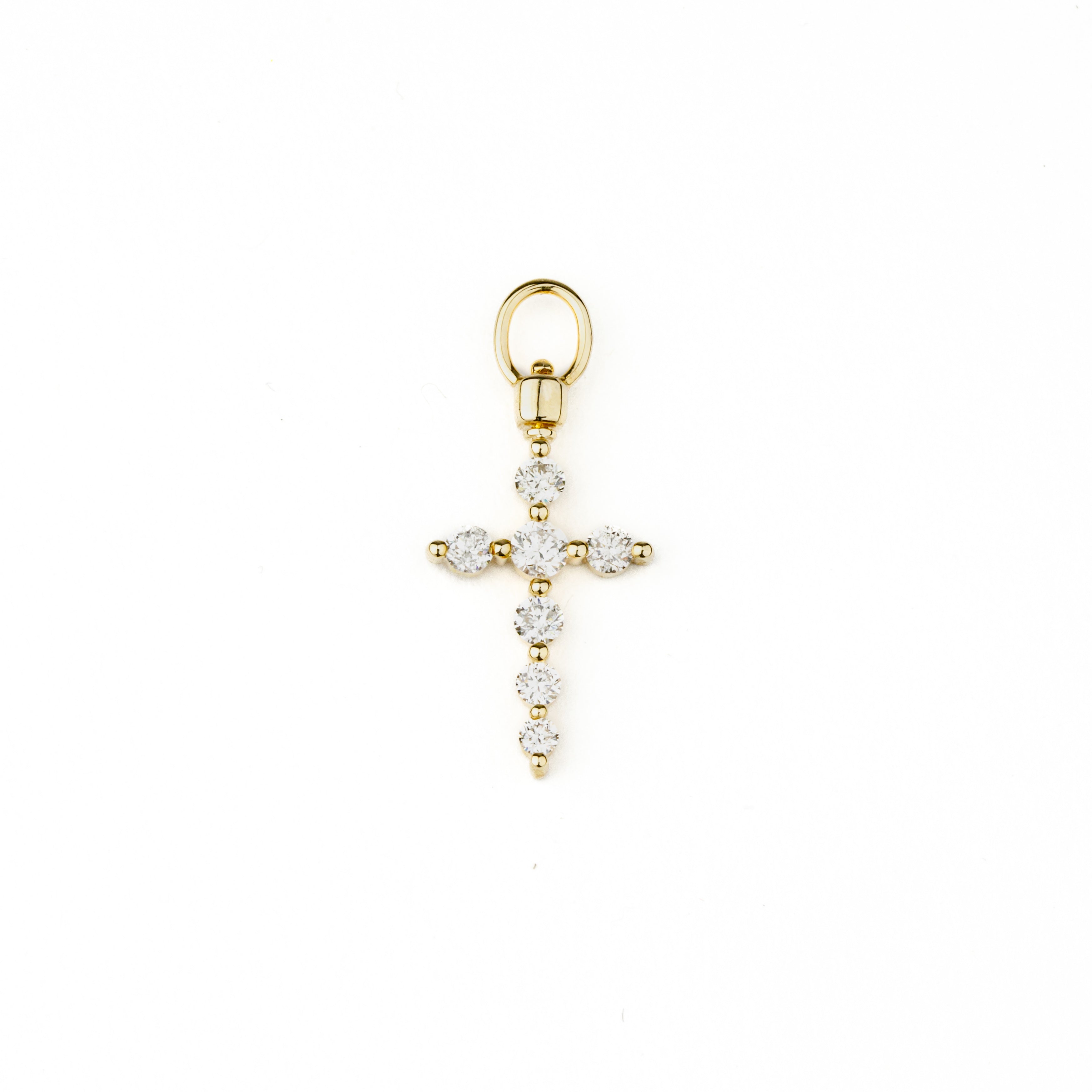 Create your own story with Three Stories Jewelry's Prong Set Diamond Cross Top Switch Charm. Add it to your collection of huggies and chains for a versatile and customizable look. With the ability to purchase as single charms or pairs, the possibilities for creating your own unique set are endless. Elevate your style with this luxury charm.