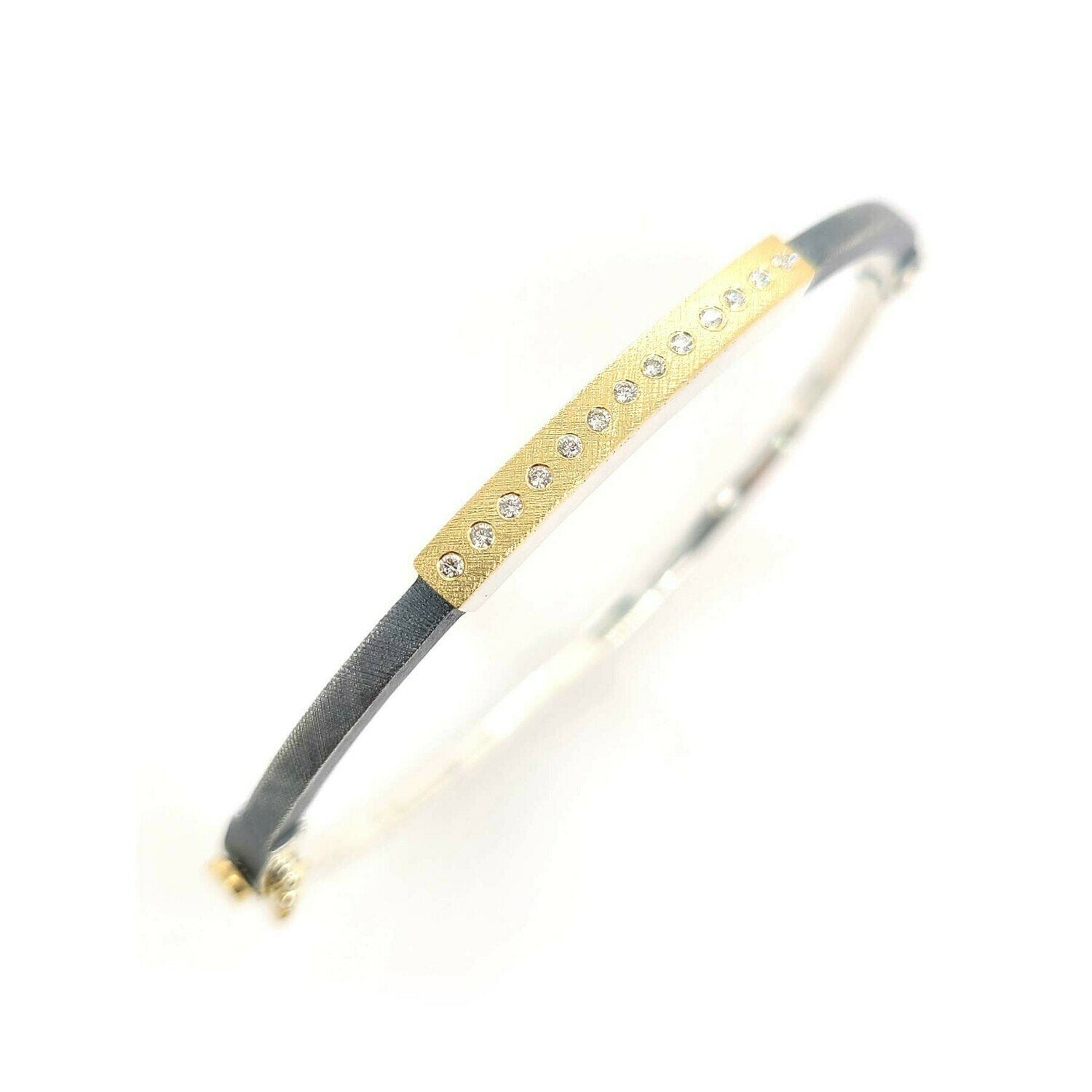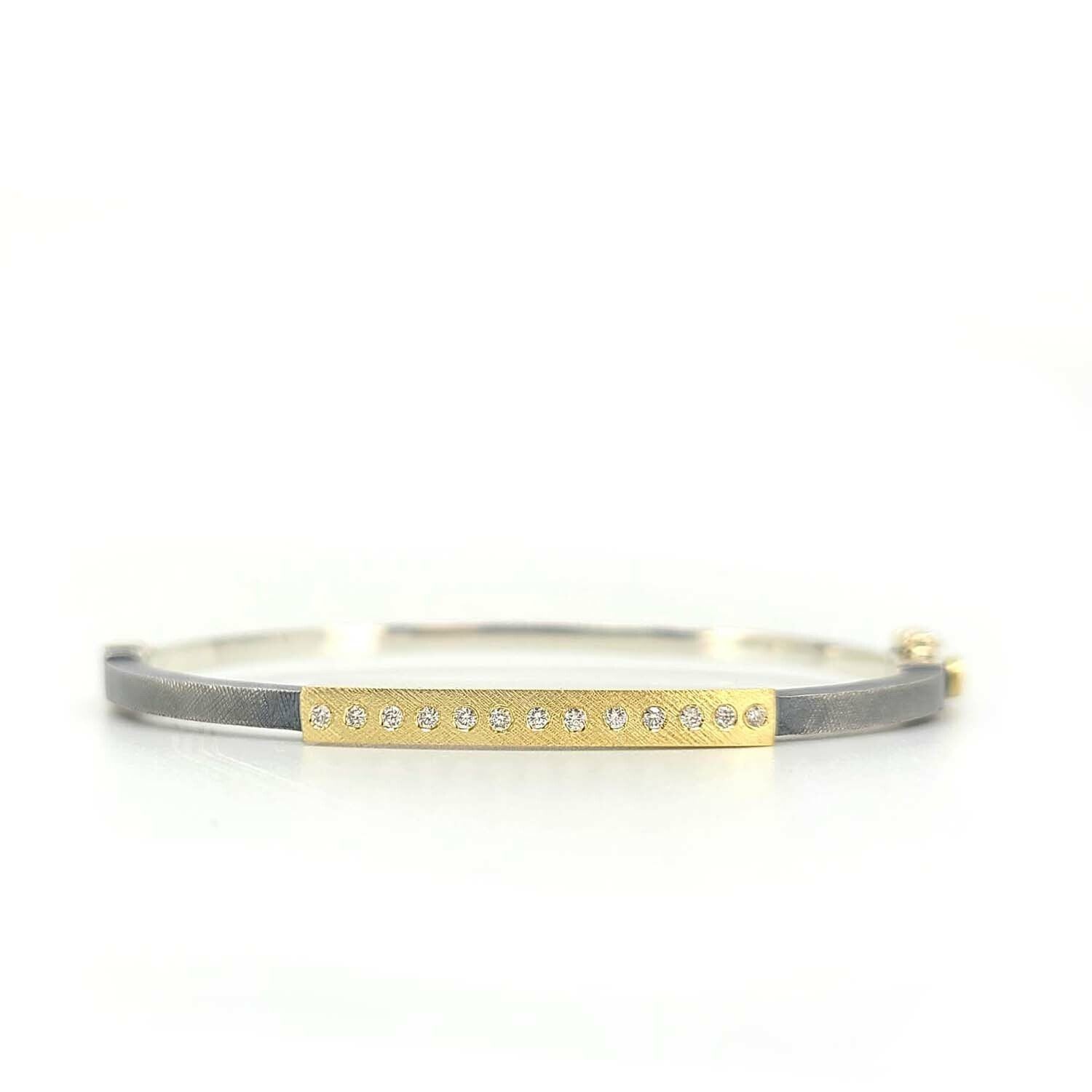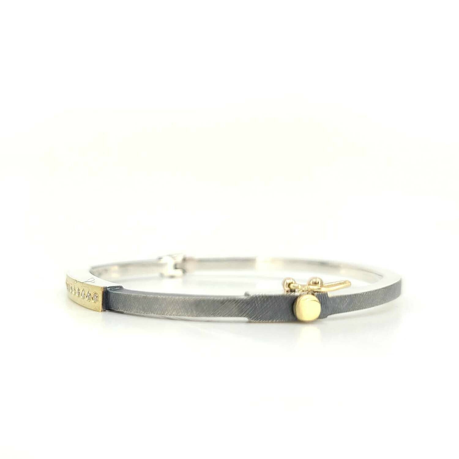 - 18k yellow gold ID bar, Oxidized Sterling Silver front and Oxidized Sterling Silver back with white diamonds along the front ID bar