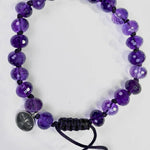 Natural stones cut into 8mm faceted rondelles on an adjustable hand-knotted cord bracelet