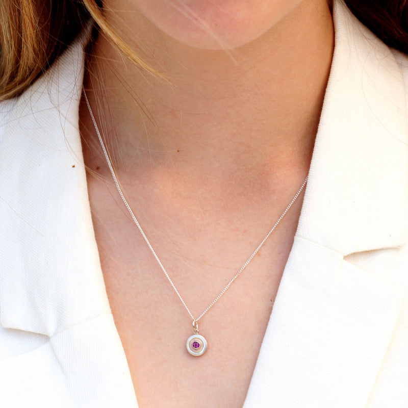 - Handcrafted Tiny En Soleil Gemstone Disc Charm in your choice of Blue Topaz, Peridot, Moonstone or Garnet with hand-painted glass enamel and sculpted sterling silver surround.
