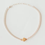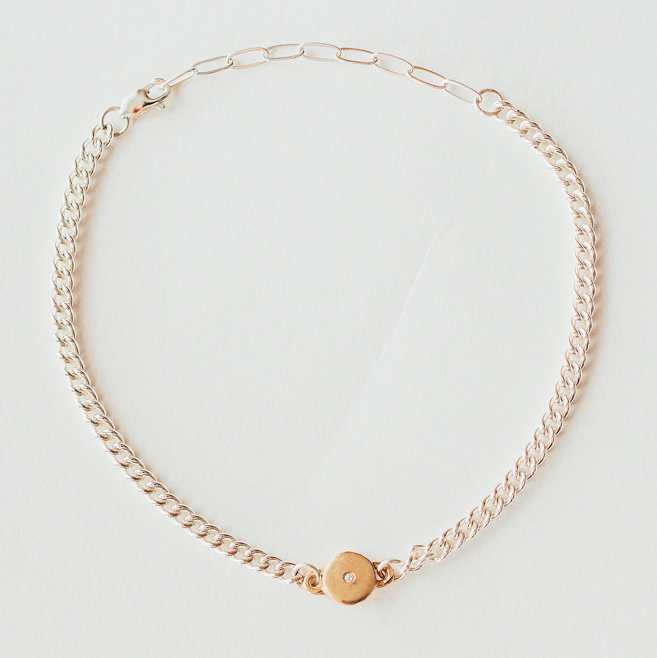 - Available in: 14k gold, sterling silver, or mixed metal (silver chain with gold centerpiece)