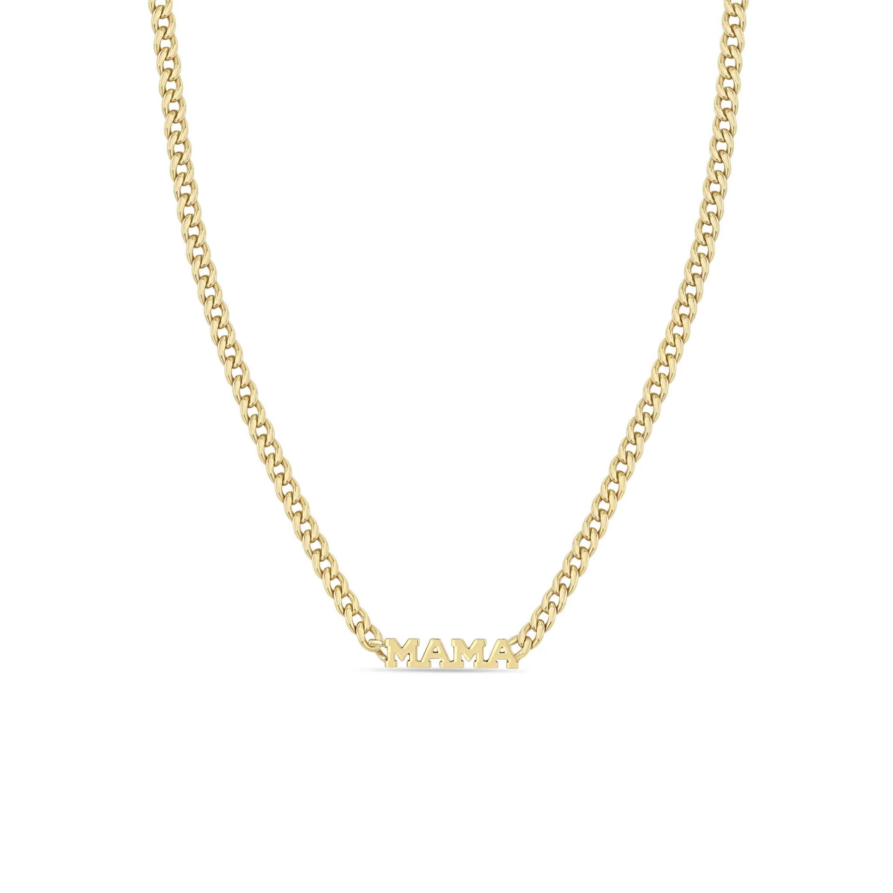 14k gold small hollow curb chain necklace with an itty bitty "MAMA"