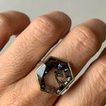 Black Tourmaline in Quartz Hexagon Ring