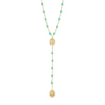 The Classic Gigi Madone Rosary necklace by gigi CLOZEAU is a colorful reimagining of ancient symbols with an elegant modern feel. This piece features 18 carat gold, elegant resin pearls and handcrafted detail.