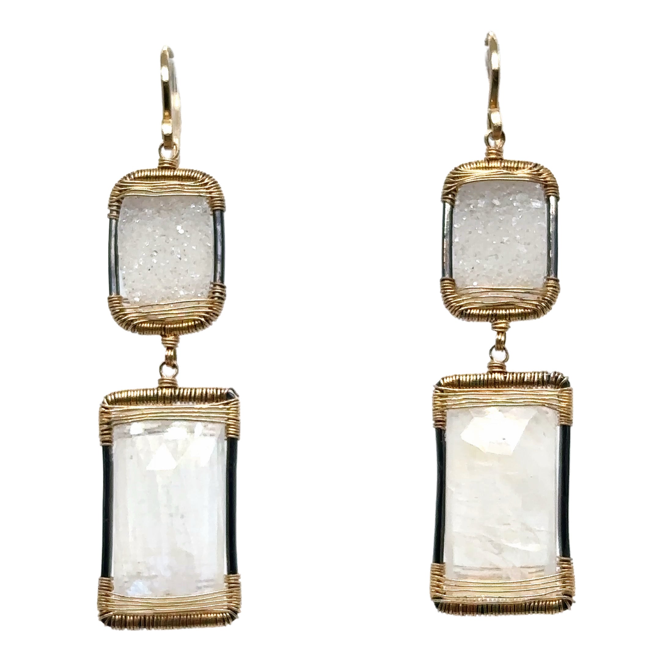 Druzy and Moonstone Tiered Wrap Earrings