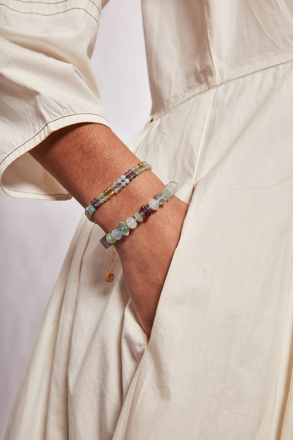 - Available in: Pink Stone Mix: Brown Jade, Light Smokey Quartz, Mystic Citrine, Red Adventurine, Strawberry Quartz, Sunstone Finished; Multi Stone Mix: Mix of semi-precious gemstones & Green Mix: Aquamarine, Iolite, Green Aventurine, Green Garnet and Grey Labradorite