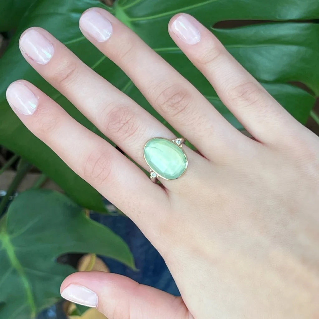 Prehnite and Diamond Ring