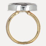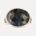 - Faceted oval-shaped labradorite gemstone set with sterling silver bezel