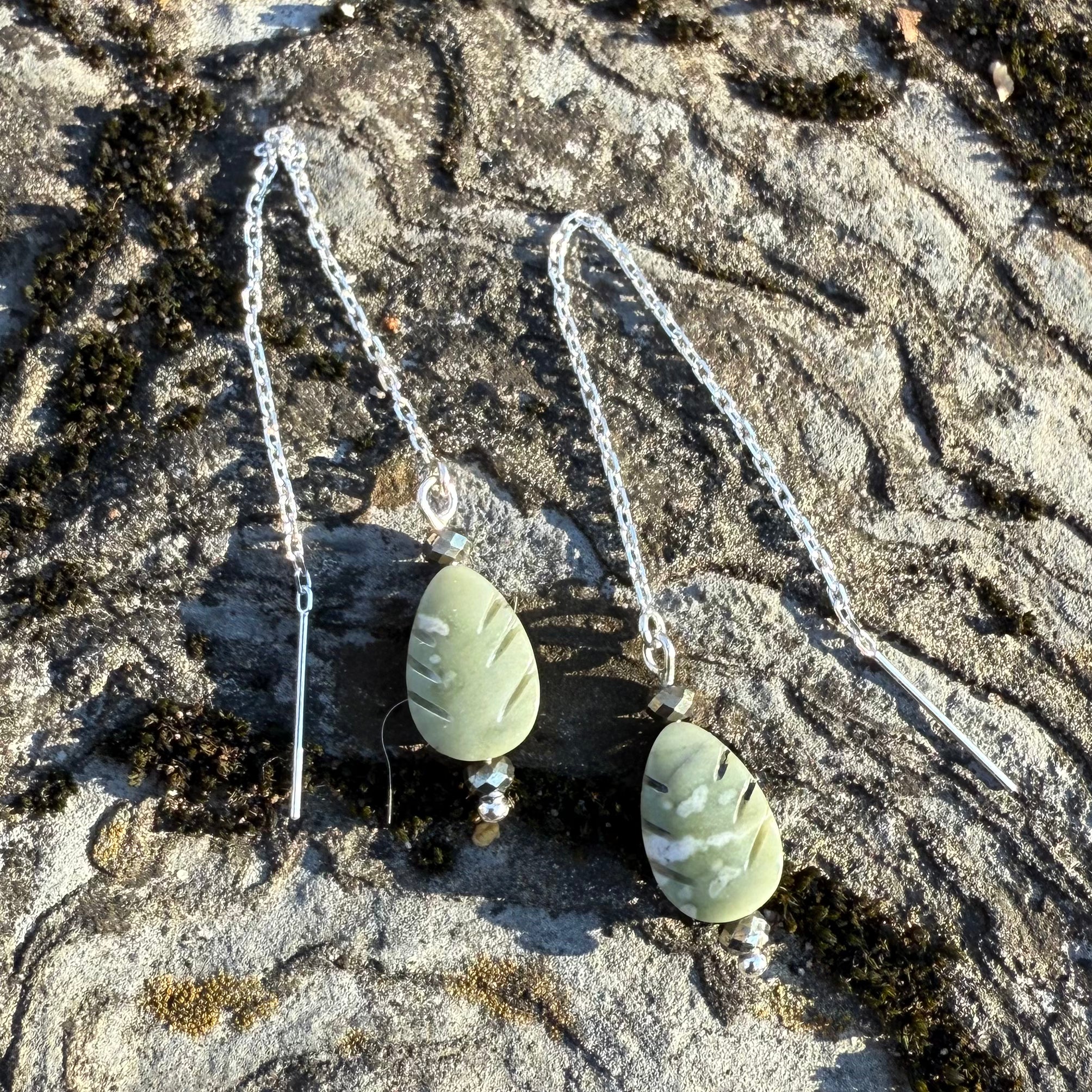 Sterling Nevada Lapis and Pyrite Leaf Threaders