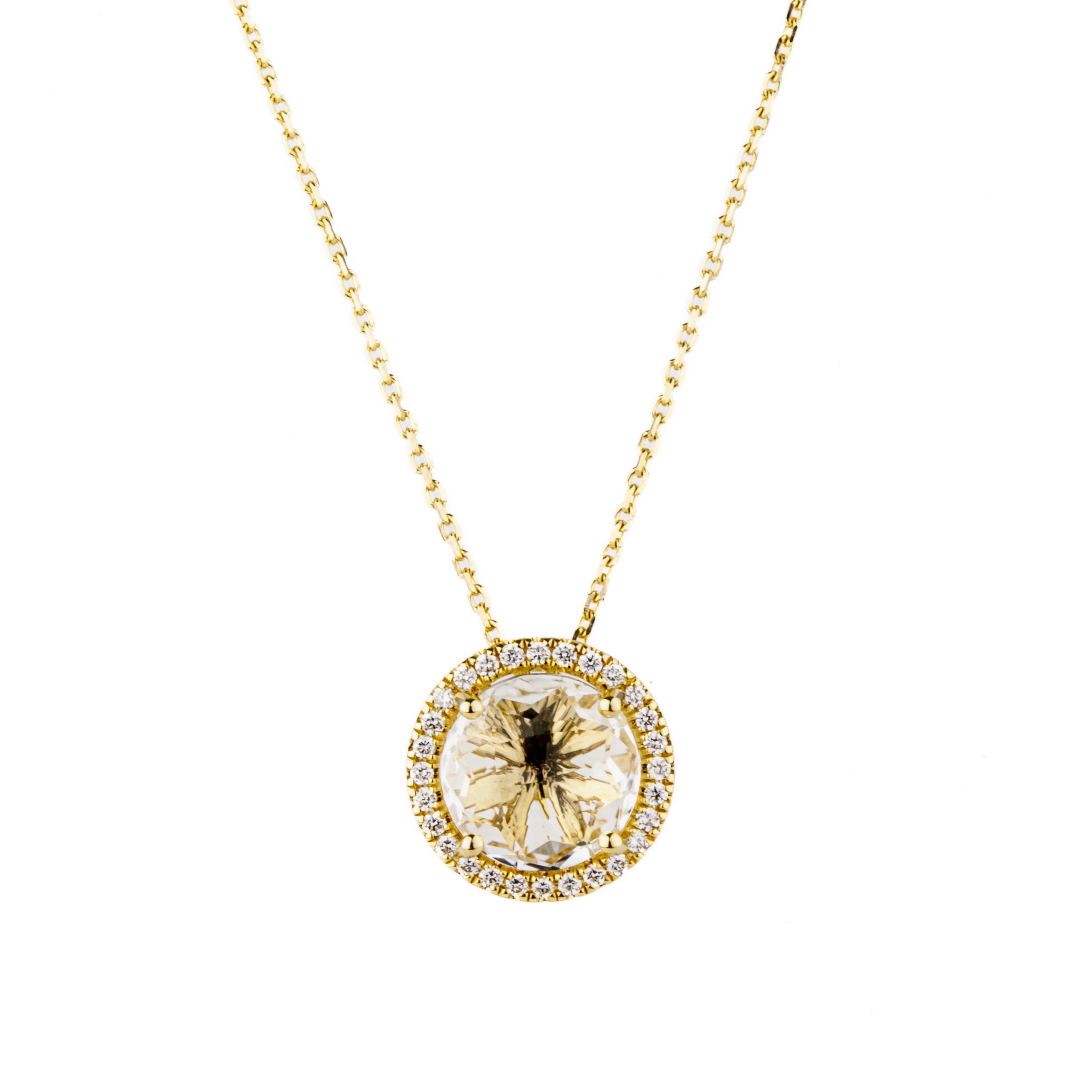White Topaz Small Round Faceted Diamond Necklace (0.12tcw)